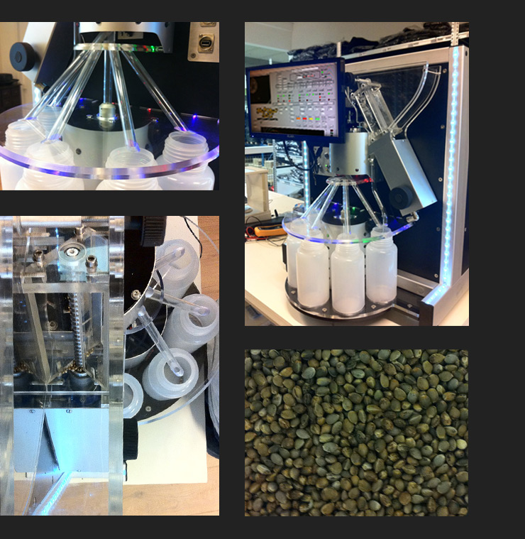 Green House Seed Company is proud to be at the cutting edge of cannabis research, year after year. Starting in 2005 and 2006 with the first resin macro-photography, we developed a series of innovations that changed our industry. We were the first seed bank to extensively apply cannabinoid and terpens testing to all our strains, and we were the first to apply a color-coating over our seeds. Ever since we exist, we have been devoting a significant part of our profits to research and development to the benefit of our customers, as well as the cannabis industry as a whole.Now, after 3 years of development, we are ready to present our newest creation: the Green House Seed Selector, a new tool to select cannabis seeds that will change forever the way we work.Until today, selection of seeds could be done in many ways, but always with the use of manpower. The task of selecting seeds prior to packaging is very delicate, and only very experienced people can acquire the necessary sensitivity and eye for the detail. Selecting seeds one by one has always been, together with manicuring bud, one of most tedious jobs in the whole cannabis industry.Now we developed a standardized, scientific and efficient way of selecting cannabis seeds based on their germination potential, size and appearance.The Green House Seed Selector is designed to select seeds based on several parameters. The Selector is fed unselected seeds, (on average, a batch of unselected seeds contains between 10% and 20% of white, immature or underdeveloped seeds) and through the use of a percussion meter and a high-resolution camera the output is divided in 5 containers, containing batches of seeds divided based on their size, weight and look. Of the 5 containers, one is used to collect seeds that have to be processed again (the machine was unsure of the quality); one is used to collect immature seeds; and the remaining three containers collect the good seeds, dividing them in 3 different batches based on aspect, size, pattern.The first step is to lift seeds and drop each one on a percussion sensor, that determines the weight and density of the seed. Then a high definition camera measures the area and the volume of the seed, and takes several pictures to determine the color and the pattern on the seed shell.The selection process takes between 2 and 3 seconds per seed, allowing the selection of just over one pound of seeds per day (continuous 24hrs operation).The parameters for the selection are different for each strain, because the seeds are different in color, shape, size and density. So we developed individual settings for each single strain, that we can import into the machine at the beginning of each selection cycle. For each strains the machine can then select and divide seeds based on the packaging needs.The Green House Seed Selector combines mechanical and electronic elements and is controlled by a unique combination of a digital processor and a control and measurement unit specially developed for this machine. The software and algorithms are unique, and never before utilized in a machine.We introduced the Green House Seed Selector at the 2011 Spannabis Expo in Barcelona, where we demonstrated its use to the media, the industry operators and the general public. Now we use it to select seeds before they are packaged, to guarantee our customers that the product is the best quality the industry has to offer.And we are already working at making this prototype into a real product, one that one day will be the standard of the industry to certify viable, healthy cannabis seeds.